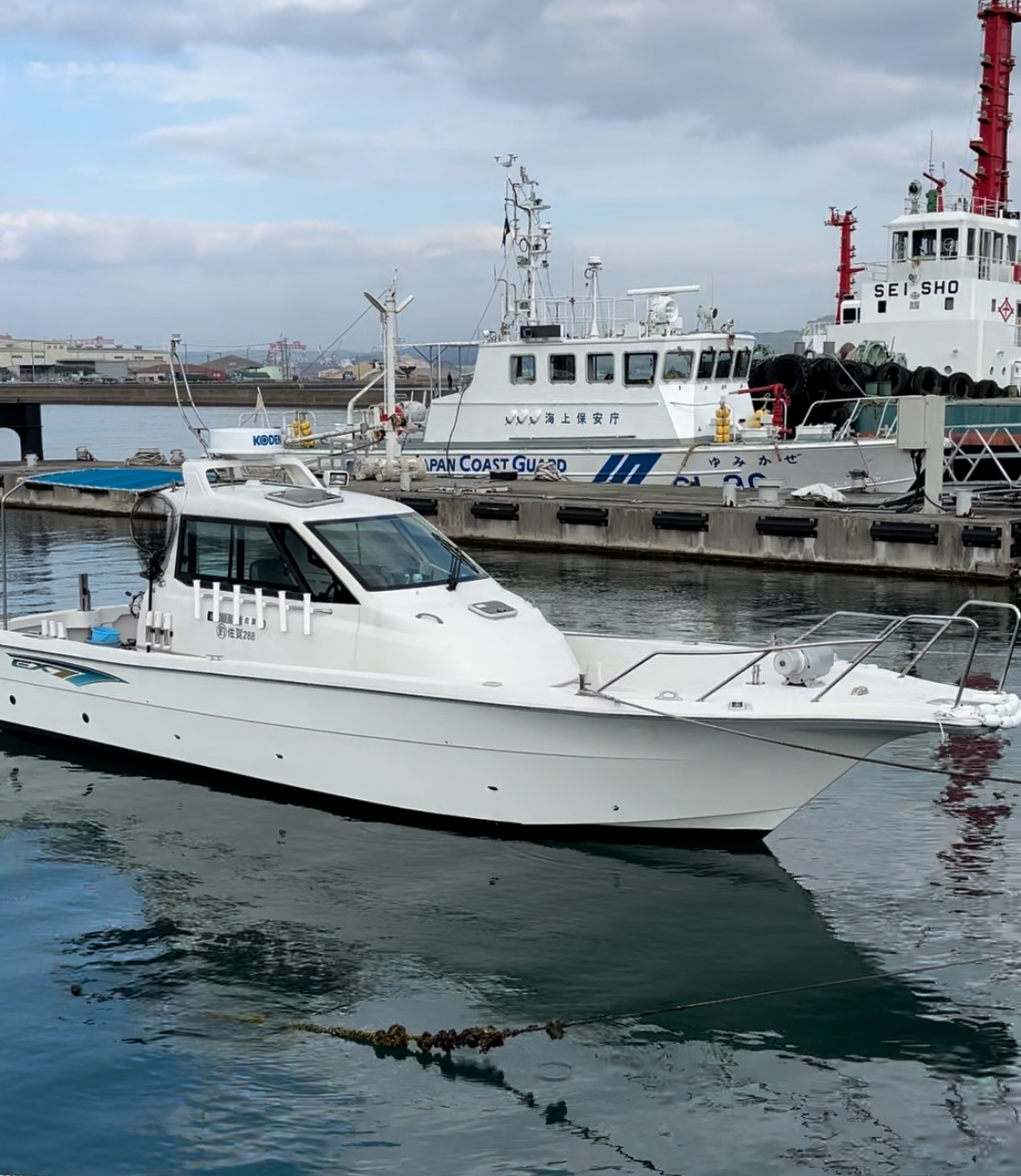 ※当遊漁船は、改正遊漁船法に基づき遊漁船責任保険を定員一人あたり5千万円の保険に加入いたしております。